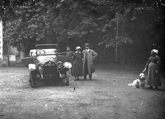 Georges Hailaust et sa femme Hélène Maury, Maria, le chauffeur et le chien