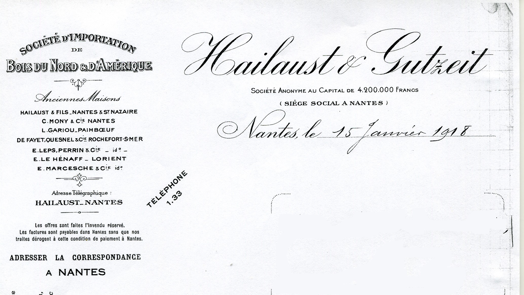 "Monsieur Hailaust appartient à la maison Hailaust et Gutzeit, "Société d'importation de bois du Nord et d'Amérique", qui s'est toujours montrée d'une générosité exceptionnelle pour les oeuvres d'Assistance et principalement les oeuvres de guerre. Monsieur Hailaust possède une grosse situation dans le commerce français. La maison qu'il dirige est une des premières du genre. Membre de la Chambre de Commerce depuis 1912, il ne cesse de collaborer activement avec ses collègues de cette compagnie, à tous les travaux si nombreux et si importants qui intéressent un département industriel et commercial comme la Loire Inférieure et un port de premier ordre comme Nantes."