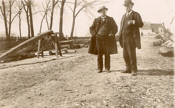 Daniel Hailaust de face, avec un inconnu à sa droite, sur le port de Sucé