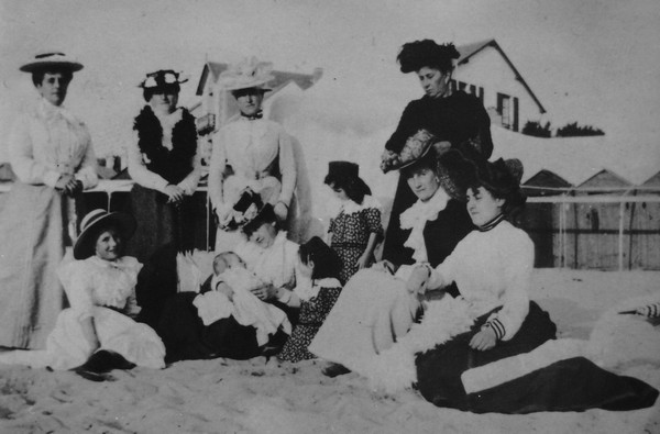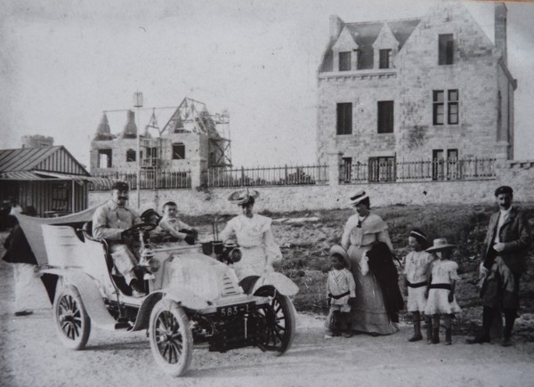 | | ←1905 Sur la plage du Bourg de Batz, dans la voiture Louis Garnier et son fils Lucien. Debout, près de la voiture, se tient Anne-Marie Riom-Garnier. A coté, Henriette Riom-Maury, Benjamin 3 son mari et ses trois enfants, Germaine, Hélène et Daniel. |